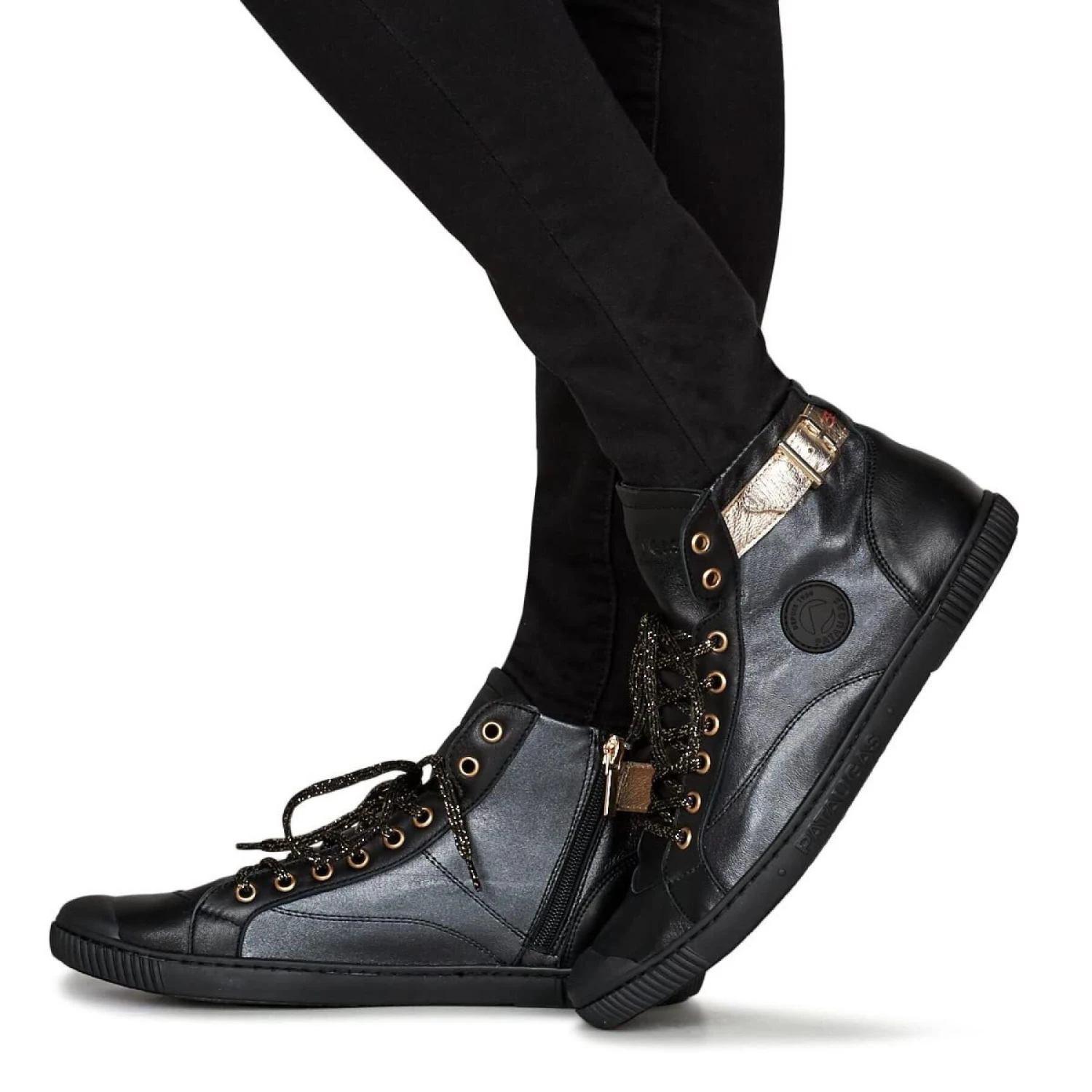 Val voor de LATSA high top trainer die dit seizoen is versierd met een mix van vrouwelijke en elegante leersoorten. Deze schoen heeft een ritssluiting en staat op een geïnjecteerde zool met een stenen bescherming aan de voorkant.